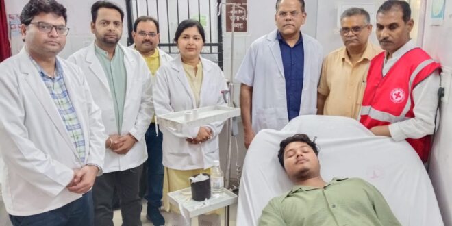 विश्व रेडक्रॉस दिवस के अवसर पर इन्डियन रेडक्रॉस सोसायटी , इटावा द्वारा जिला चिकित्सालय इटावा की व्लड बैक में रक्त दान करने