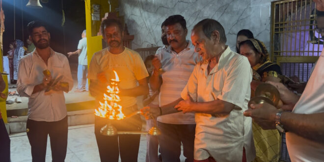 यमुना का जल स्तर कम होने और लोगों को कष्ट से राहत देने को भक्तों नें यमुना घाट स्थिति पीताम्बरा माता के मंदिर पर विशेष आरती की