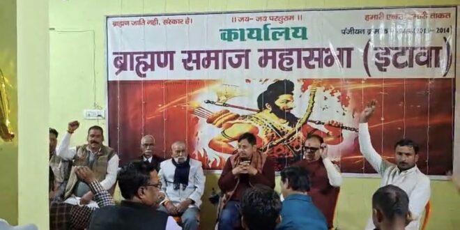 इटावा: UGC 2026 के प्रस्तावित निर्णय के खिलाफ ब्राह्मण समाज का जोरदार विरोध